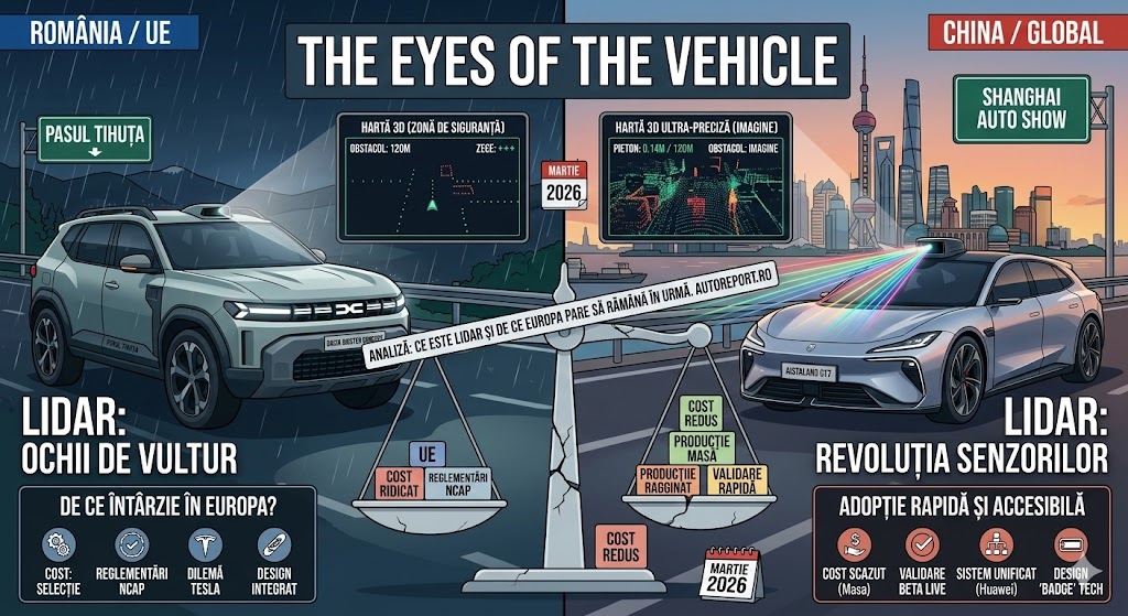 În ultimul an, numele LiDAR a devenit un cuvânt de ordine în industria auto globală. De la noul Aistaland GT7 (proiectul Huawei-GAC) cu ai săi 896 de canale, până la modelele de lux de la Volvo sau Mercedes-Benz, această tehnologie promite să fie „asul din mânecă” pentru condusul autonom de Nivel 3. Totuși, dacă te uiți pe șoselele din România sau Germania, mașinile echipate cu acele „gâlme” pe plafon sunt încă o raritate.