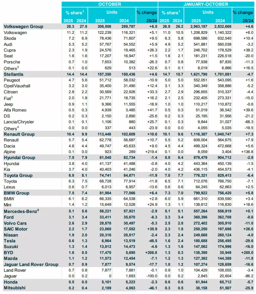 Constructorii auto chinezi continuă să își accelereze prezența în Europa, cucerind constant o felie mai mare din piață. Considerați odinioară nișe, aceștia reprezintă acum o cotă de 6,8% din totalul vânzărilor europene în octombrie, cu SAIC și BYD în frunte, în timp ce elanul Tesla încetinește.