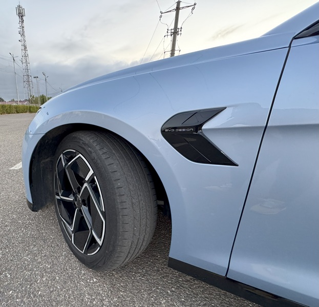 BYD Seal arată bine. Farurile cu design angular și linia fluidă a caroseriei, inspirată de valuri, îi conferă o alură sportivă și elegantă. Partea frontală „Ocean X” este agresivă, iar silueta de tip fastback îi dă un plus de dinamism. Detaliile de pe portiere, cu mici picături gravate, sunt o dovadă a atenției la detalii, un „easter egg” plăcut pentru ochiul atent.