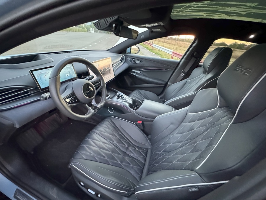 Versiunea Excellence AWD este echipată cu o baterie Blade de 82,5 kWh, care promite o autonomie WLTP de 520 km. În testul nostru, am reușit să ne apropiem de această valoare în condiții de trafic normal, cu un stil de condus echilibrat. Consumul mediu se situează în jurul a 16 kWh/100 km, o valoare decentă pentru o mașină de această putere.
