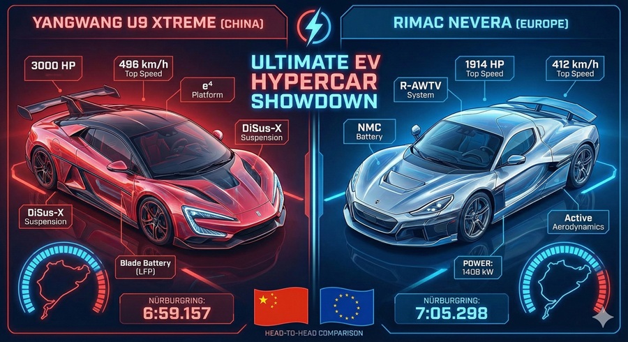 | Caracteristică | Yangwang U9 Xtreme (China) | Rimac Nevera (Europa) |