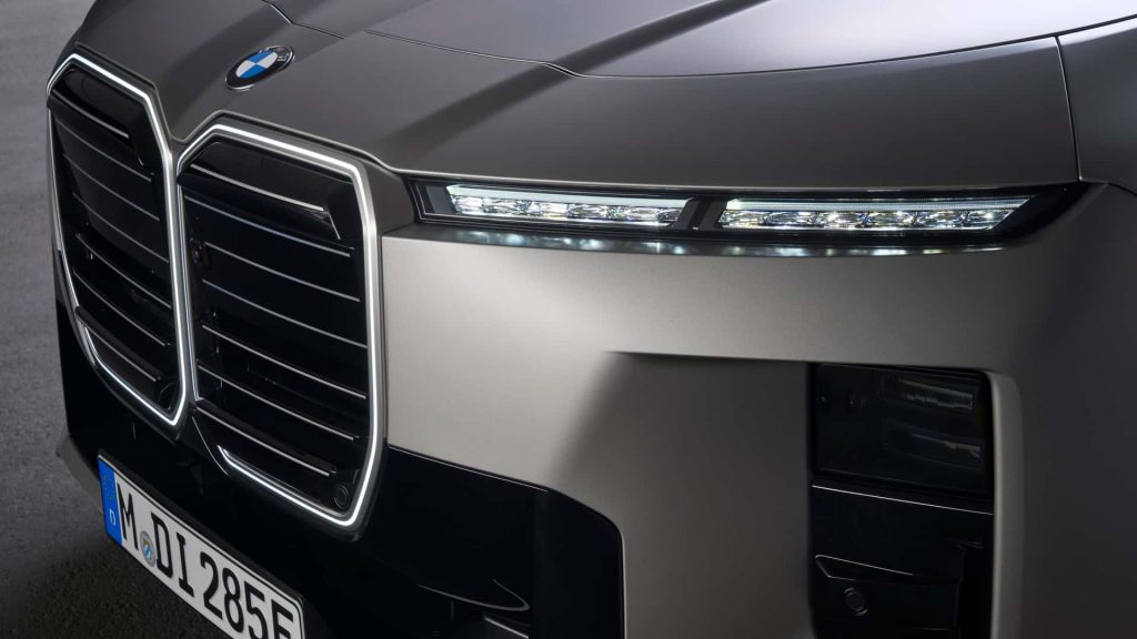 Deși păstrează platforma CLAR, noul Seria 7 adoptă o estetică industrială mai curajoasă. Grila jumbo, acum iluminată, are bare orizontale și este flancată de faruri de zi (DRL) ultrasubțiri. Blocurile optice principale sunt aproape ascunse în prizele de aer, oferind mașinii un aspect de bloc solid, masiv. În spate, stopurile s-au lungit, apropiindu-se de conceptul de „light bar” continuu, iar sigla adoptă noul finisaj mat al mărcii.