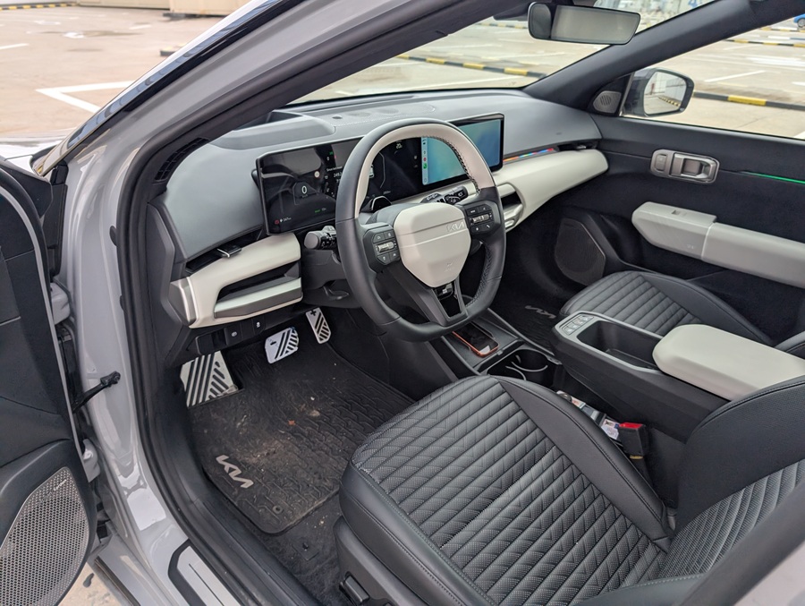 De la prima cheie (sau mai degrabă, de la prima apăsare a pedalei), EV4 confirmă maturitatea platformei electrice KIA. Designul este îndrăzneț, urmând limbajul estetic „Opposites United” al mărcii, dar se simte mai rafinat și mai aerodinamic decât frații săi mai mari. Deși cei 200 de cai putere nu o transformă într-un drag racer, mașina oferă o accelerație promptă și suficientă pentru depășirile scurte și dinamica urbană.