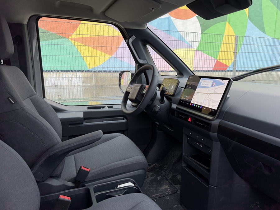 Spre deosebire de mulți competitori care doar „electrifică” șasiuri de furgonete clasice, PV5 este dezvoltată pe o platformă specială (Platform Beyond Vehicle – PBV). Acest lucru se simte imediat ce te urci la volan. Poziția de condus, ergonomia și vizibilitatea sunt mult mai apropiate de un SUV din gama EV (precum EV6 sau EV9) decât de un van tradițional.