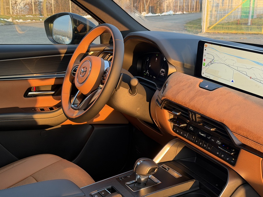 Sub capotă, Mazda rămâne fidelă sistemului PHEV care combină motorul e-Skyactiv G de 2.5 litri cu un motor electric de 129 kW. Cei 327 CP și 500 Nm sunt livrați acum cu un rafinament acustic superior, insonorizarea habitaclului fiind vizibil îmbunătățită pentru modelul 2026.