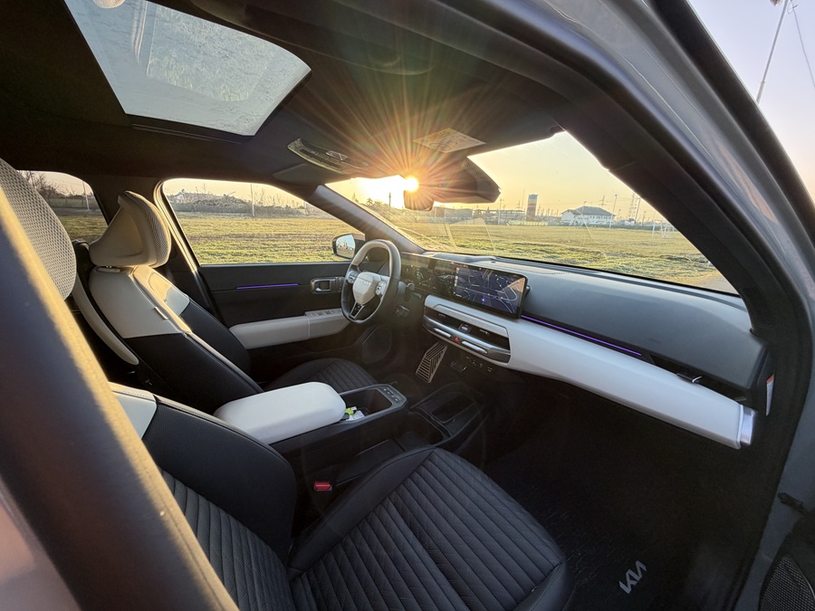 În cadrul testului nostru, am reușit să obținem un consum mediu mixt de aproximativ 14,8 – 15,2 kWh/100 km, o cifră impresionantă pentru o mașină de aceste dimensiuni. Cu bateria de 81,4 kWh, autonomia reală sare lejer de 500 – 550 km în condiții de condus normal, transformând călătoriile lungi prin România dintr-o provocare într-o plăcere.