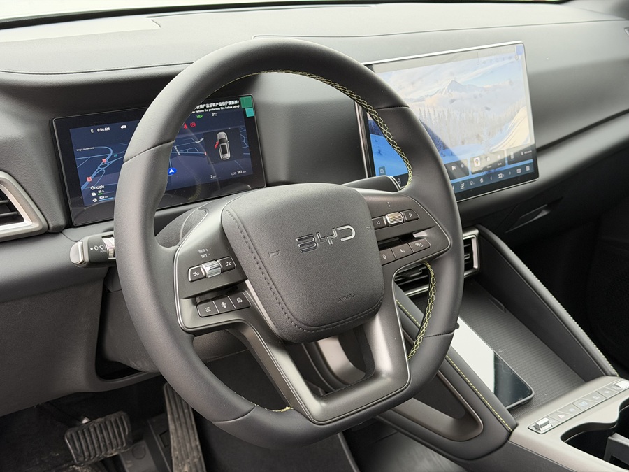 La drum întins, asistentul vocal ne-a demonstrat că viitorul este aici. Datorită AI-ului generativ, sistemul înțelege limbajul natural. Când am spus „Hi BYD, mi-e poftă de o cafea în Ploiești”, sistemul nu doar că a găsit locațiile, dar a ținut minte contextul discuției pentru următoarele întrebări legate de traseu.