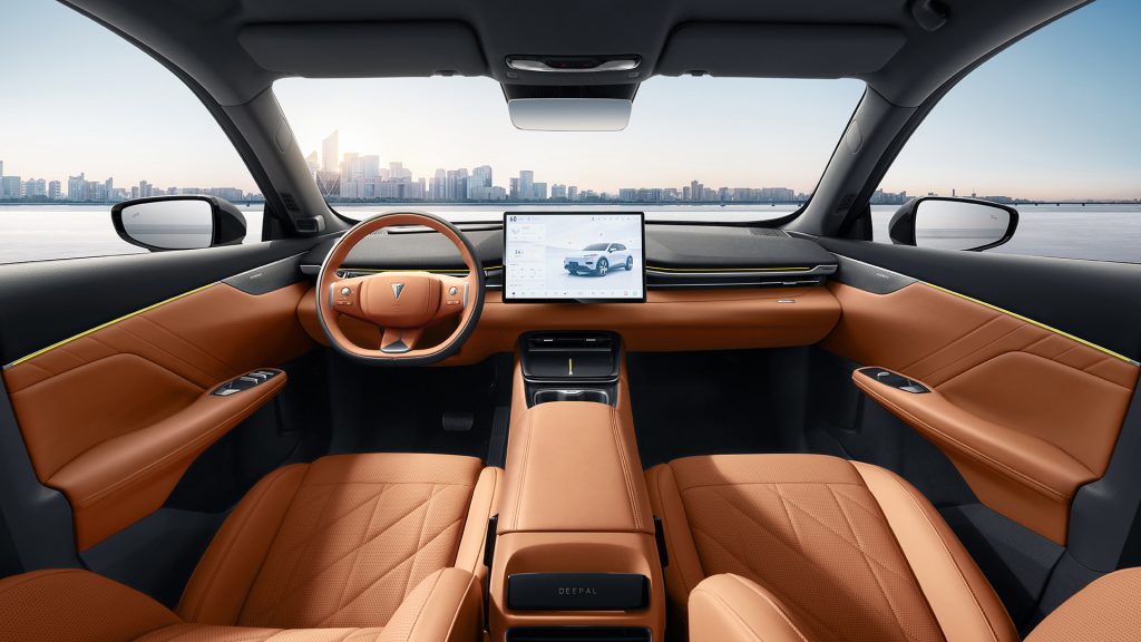 Deepal S05 impresionează prin designul fluid, având un coeficient aerodinamic de 0,25 $C_d$. La interior, accentul este pus pe digitalizare: