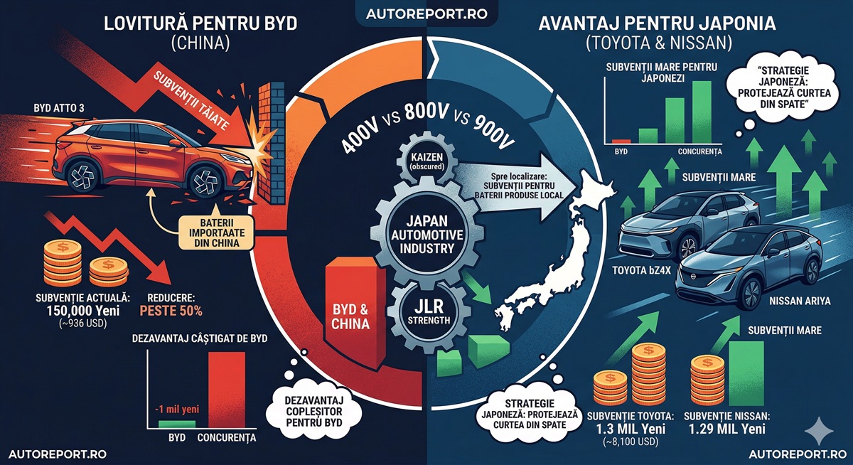 Japonia nu doar că blochează China, dar își forțează partenerii străini să investească local. Audi și Hyundai au văzut creșteri temporare ale subvențiilor, dar acestea vor fi revizuite în ianuarie 2027 în funcție de amprenta locală de producție a componentelor.