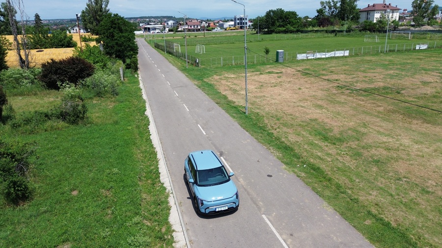 Pe Drumul Național (DN), EV3 confirmă că are puterea necesară. Depășirile se fac cu încredere și rapiditate, iar stabilitatea la viteze de 80-100 km/h este solidă.