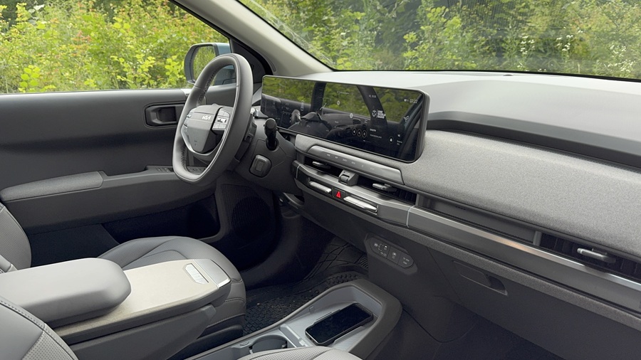 La interior, EV3 impresionează cu o atmosferă modernă și un design axat pe utilizator. Spațiul este unul dintre punctele forte, datorită platformei dedicate electricelor. Pasagerii din spate beneficiază de mult loc pentru picioare, iar planșa de bord combină ecranele mari ale sistemului de infotainment cu butoane fizice dedicate pentru climatizare – o alegere excelentă în materie de ergonomie.