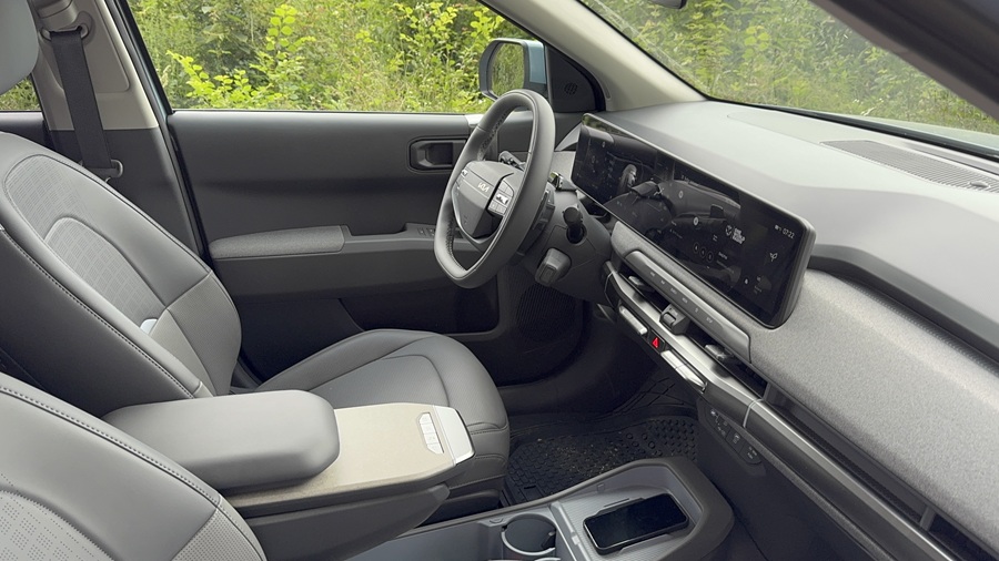 EV3 nu face rabat nici la capitolul confort și interactivitate. Planșa de bord dominată de ecranele integrate oferă o vizibilitate excelentă și acces rapid la toate funcțiile: