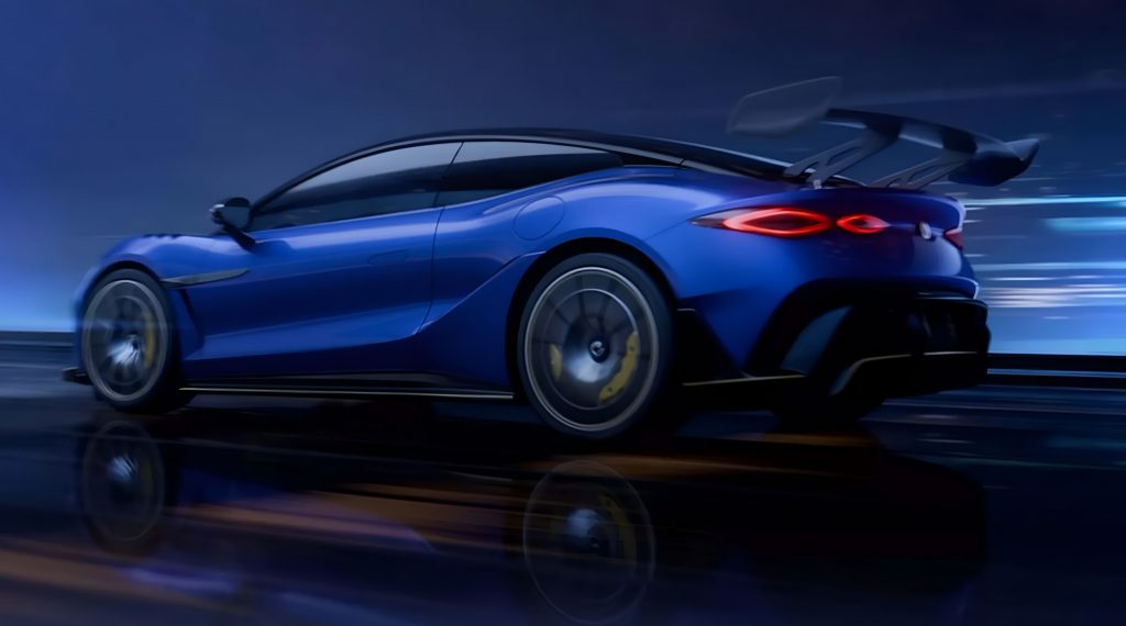 Deși prototipurile surprinse recent la teste au renunțat la eleronul masiv de pe concept în favoarea unor linii mai fluide, agresivitatea rămâne cuvântul de ordine. Ferestrele fără ramă, spatele lat și stopurile duble subliniază apartenența la elita mașinilor sport.